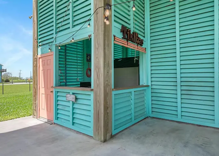 Os hóspedes podem desfrutar de uma vista para o mar para o mar de pátio na pousada Steps To The Beach | Tiki Bar Fun | Epic Bay Views | Sleeps 8 Crystal Beach, a 20 minutos a pé de The Big Store and Ace Hardware. Os hóspedes podem desfrutar de pesca nesta casa de férias, localizada a 3.1 km de Fun Spot Water Slide.